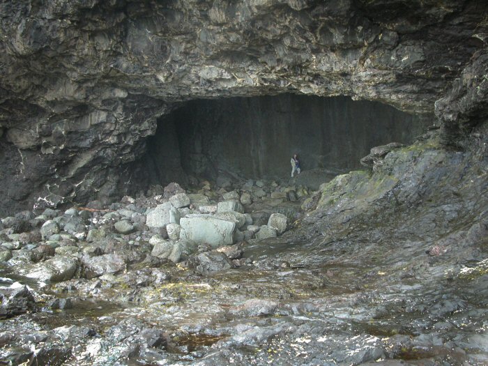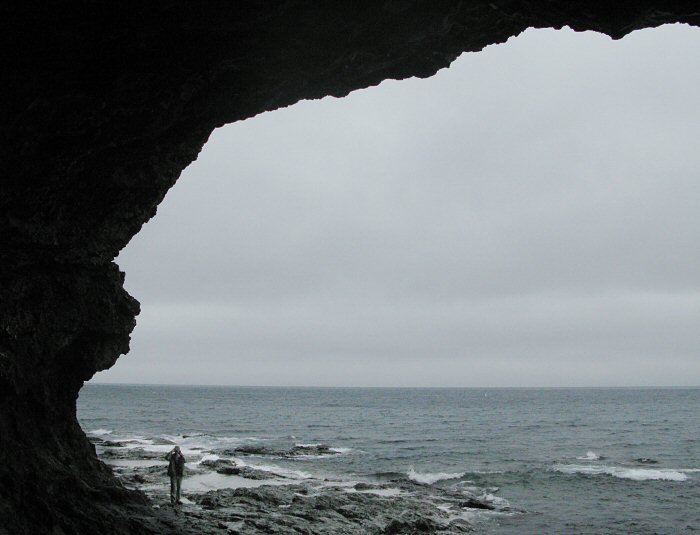 We climbed down to the shore. It was low tide so we were able to scramble over rocks and around a point to this gigantic sea cave.