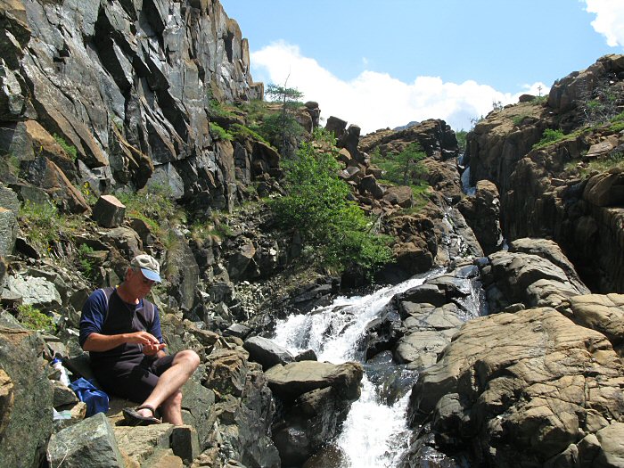 It was hot and sere, and yet there were snowfields high up on the mountains. Waterfalls cascaded down here and there.