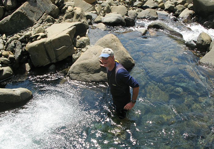 Mark cooled off in the icy water. Even though he was wearing a wetsuit he wouldn't dip in any deeper than this!