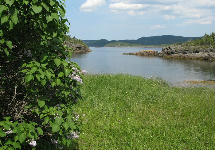 We reached our beautiful campsite. It was obviously a one-time homestead - there was an apple tree and this lilac bush, and drifts of daisies, buttercups, and artemisia. We were not far from the crash and noise of open ocean, but tucked into this cove it was quiet and still.