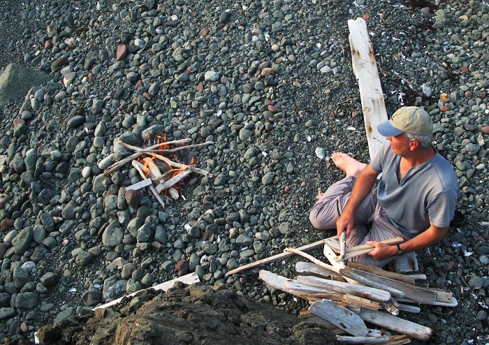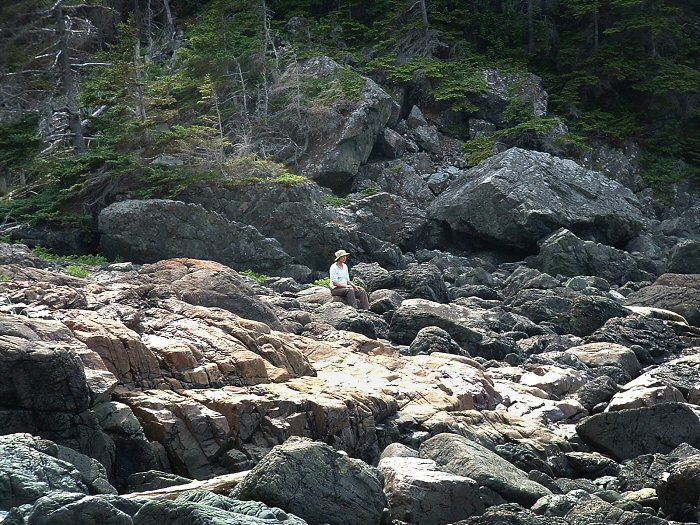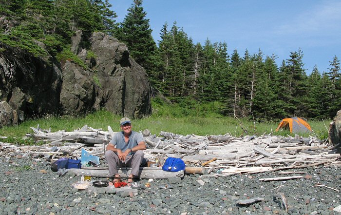 This was our campsite for the night, deep in Indian Cove. We found a tidal pool that had been warming in the sun all day - this was our hot tub to soothe aching muscles. I got lots of rest and began to feel better. Mark filled the sunshower with stream water and set it out to heat in the sun so that we could wash off the salt.
