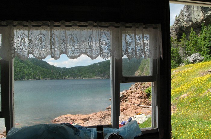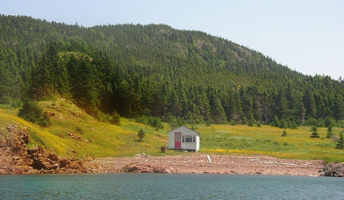 We'd read that in Newfoundland people leave their fishing cottages open so that travelers can use them, and that it was acceptable to stay the night and leave a note of thanks. The door was unlocked. We were far from any towns. We moved in for the night, leaving a note and two chocolate bars as a gift.