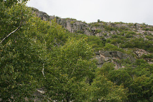 The guidebook had a single trail that was rated oddly. It said: Ladders. This sounded more than strenuous to me. But as I drove by the parking area, I could see people up on this rock cliff. I pulled in to look. Aw heck, it didn't look that hard. I grabbed my camera and started up the trail, taking brief notice of the large yellow CAUTION sign at the base warning of sheer drops, prior deaths, and the handiness (but not absolutely required) of mountaineering experience. Didn't take long to find out why.