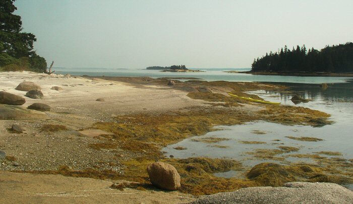 This was my favorite island, Hell's Half Acre, apparently so named because it lies next to Devil Island. The vistas are gorgeous in all directions, there's a wide shell beach, the water is clear and calm, and it feels isolated from the rest of the world. I watched a weasel swim across to a rock outcrop and then back again.