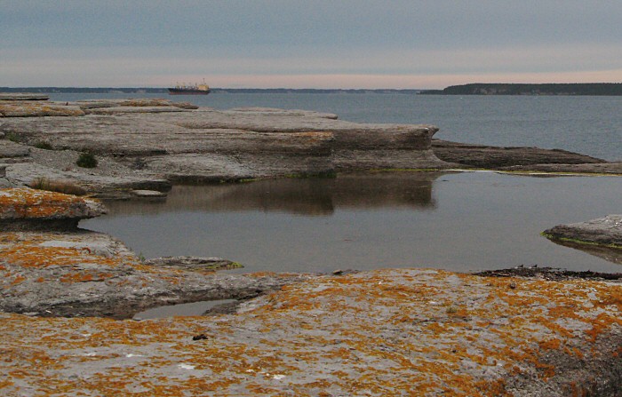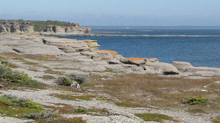 Calm weather in the morning. Looking across Pointe Enragee toward Ile aux Goelands.