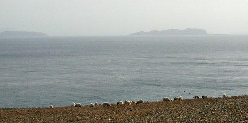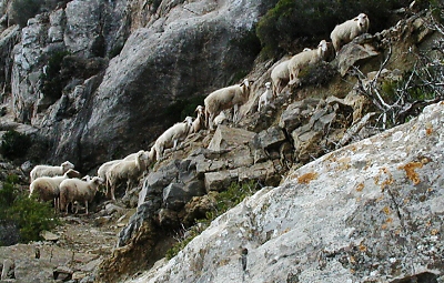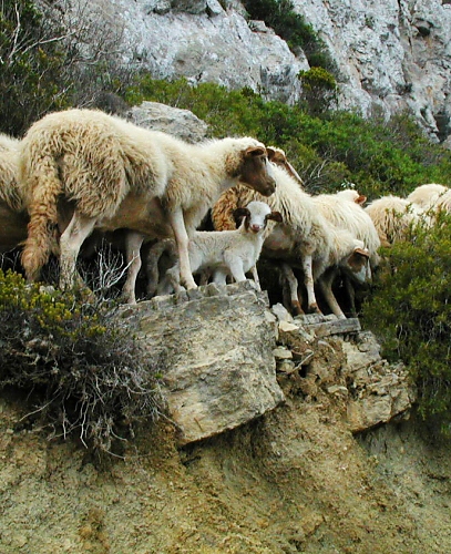 Maréttimo is the westernmost of the three égadi islands, west of Trŕpani. It has one small town of 300 residents (seen above in the white jetty near the top) and the rest of the island is wild and deserted except by herds of goats and a diminutive form of bighorn sheep.